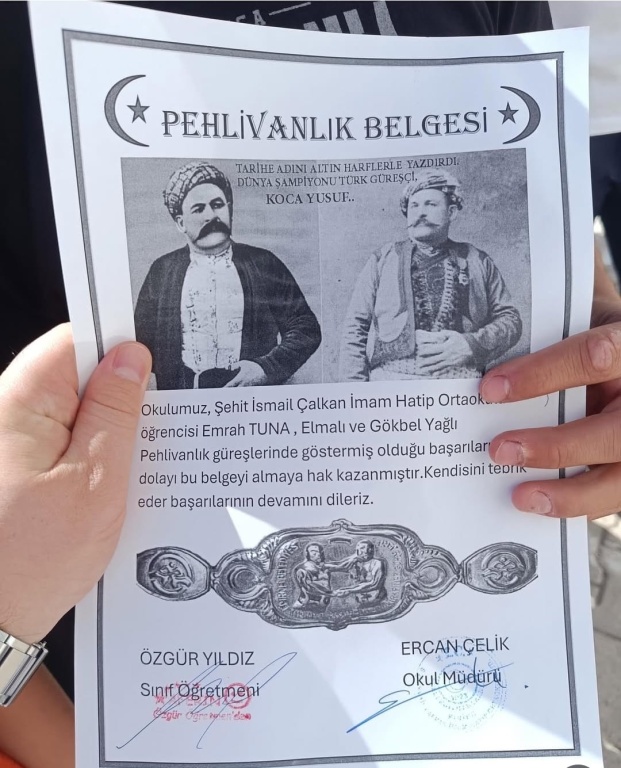 Okulumuz 7.sınıf Öğrencilerinden Emrah Tuna Elmalı ve Gökbel Yağlı Pehlivanlık Güreşinde 1.Oldu.Öğrencimizi tebrik ediyoruz.